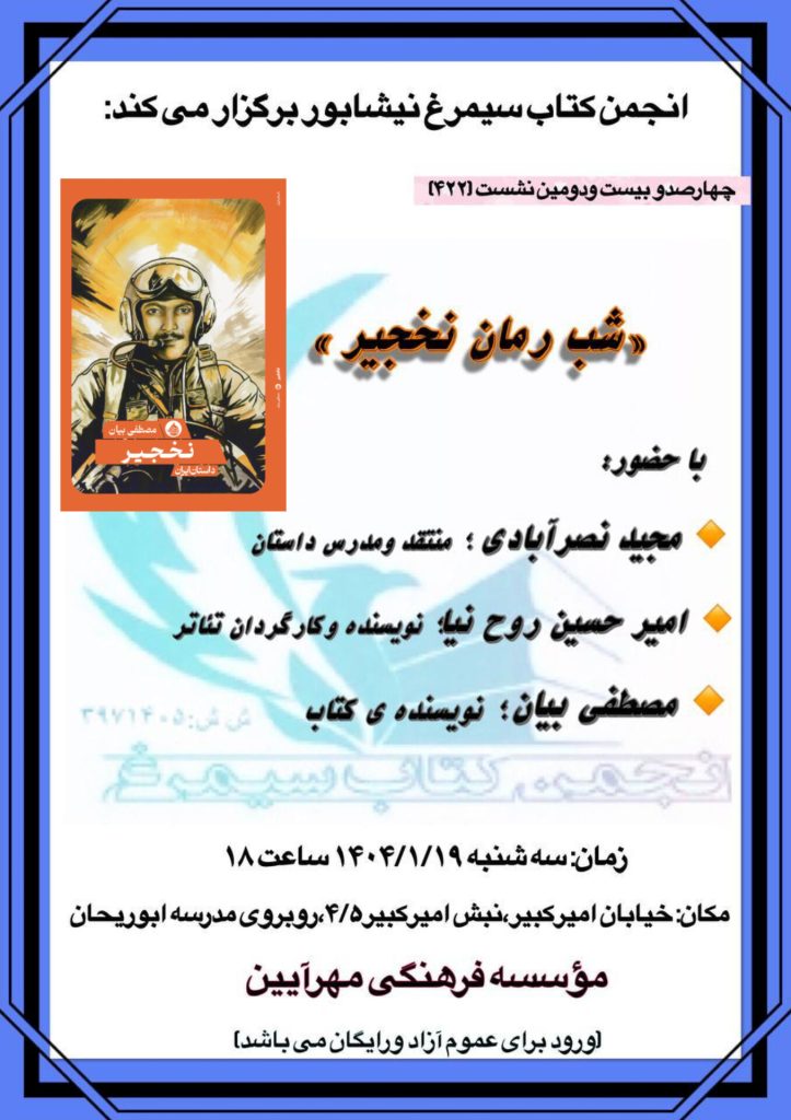 + نوشته شده در یکشنبه هفدهم فروردین ۱۴۰۴ ساعت 21:43 توسط انجمن داستان سیمرغ نیشابور